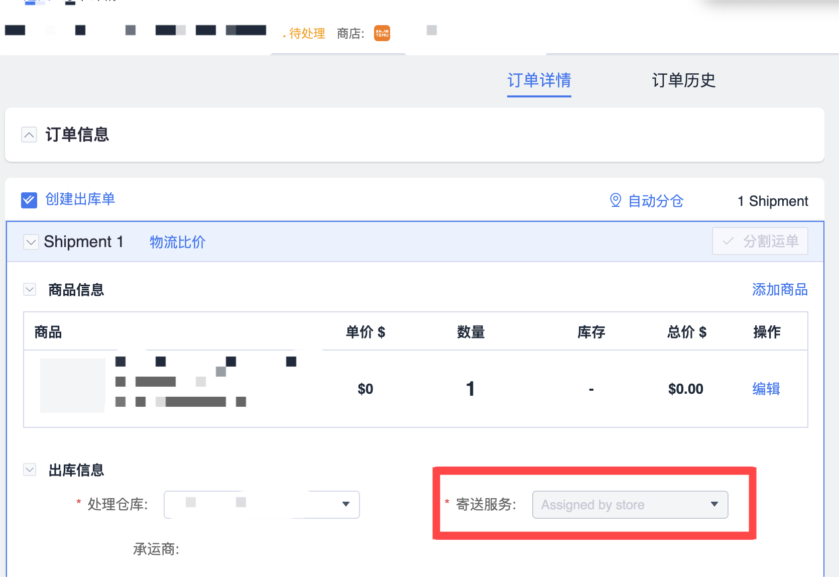 • When order status is Shipped: The system shows “Temu store waybill, no need to return”; shipping service displays Assigned by store (uses Temu waybill for outbound).