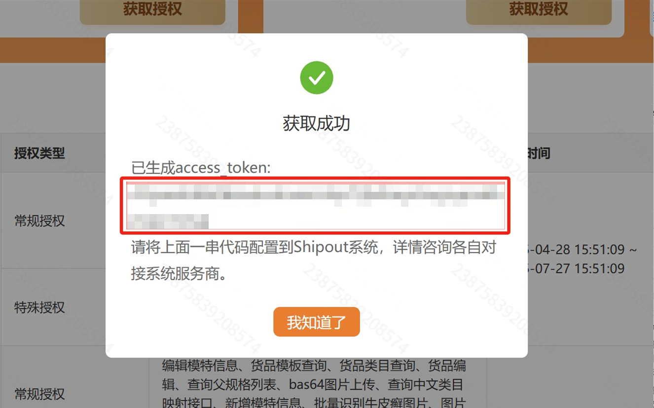2.2.3 Copy the generated Access Token and save it as your Order Access Token for ShipOut integration.
